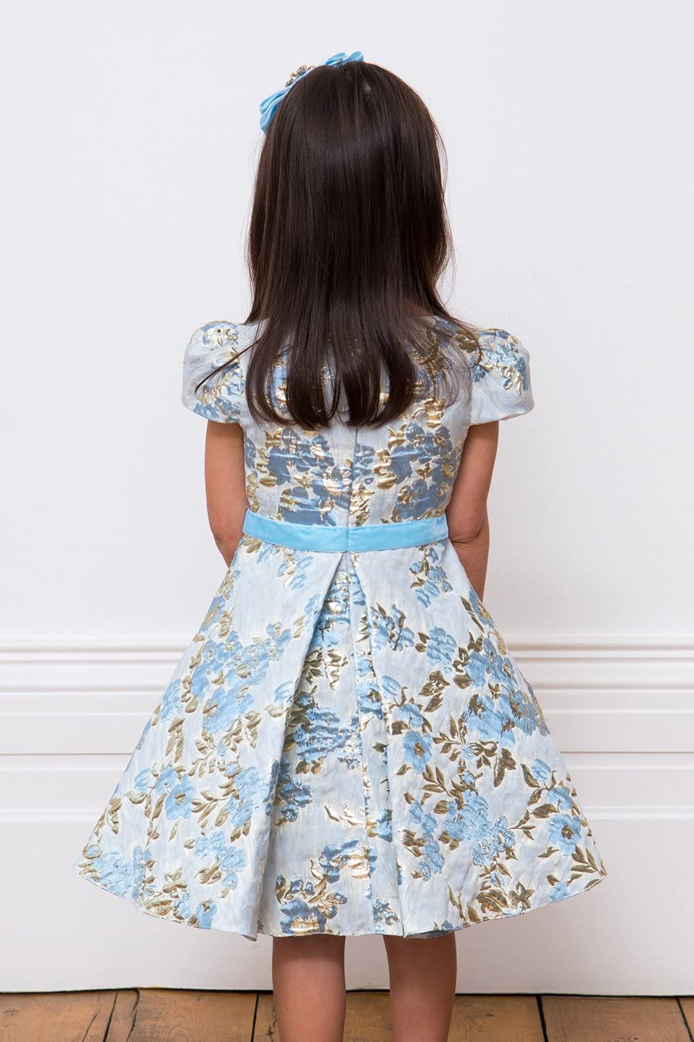 Amazon Com Brocade Jacquard Fabric Sea Blue Gold Color Floral Butterflies 44 Bro22 1 By The Yard Arts Crafts Sewing