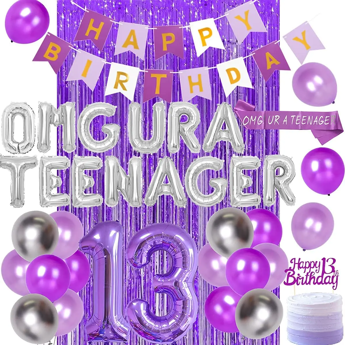 13th Birthday Party Decorations For Girls Purple Omg Ur A Teenager Balloons Sash Happy 13th Birthday Cake Topper Fringe Curtain Aliexpress