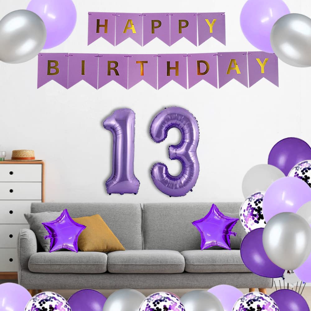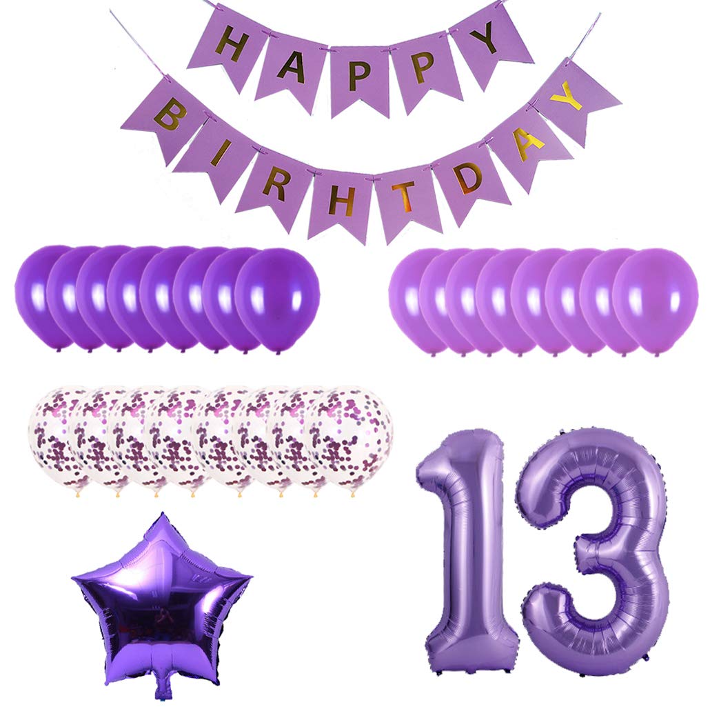 13th Birthday Party Decorations Kit Happy Birthday Banner With Number 13 Birthday Balloons For Birthday Party Supplies 13th Purple Birthday Party Pack Toys Games Amazon Com